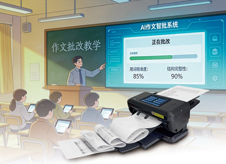 华科益 eScan A650 网络扫描仪凭借专业的校园场景采集能力,携手 AI 作文智批系统打造软硬件深度融合的作文教学智慧解决方案,以高效采集为基础,以智能批阅为核心,实现作文教学从原稿采集到学情分析、精准教学的全流程数字化,为中小学作文教学提质减负注入硬核动力。