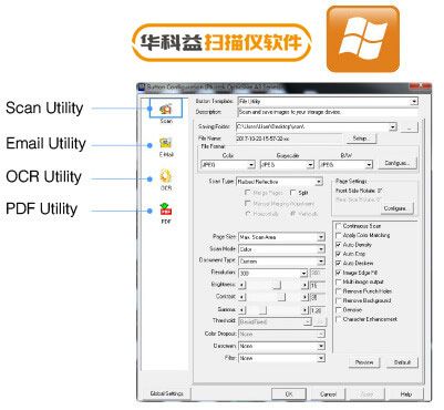 华科益特别定制开发按键设置软件,您可以根据个人的工作需要灵活的设置按键的功能,设置完成后您只需按下扫描仪上的按键,就能让扫描仪根据你的设置来扫描、存储、并处理文档。